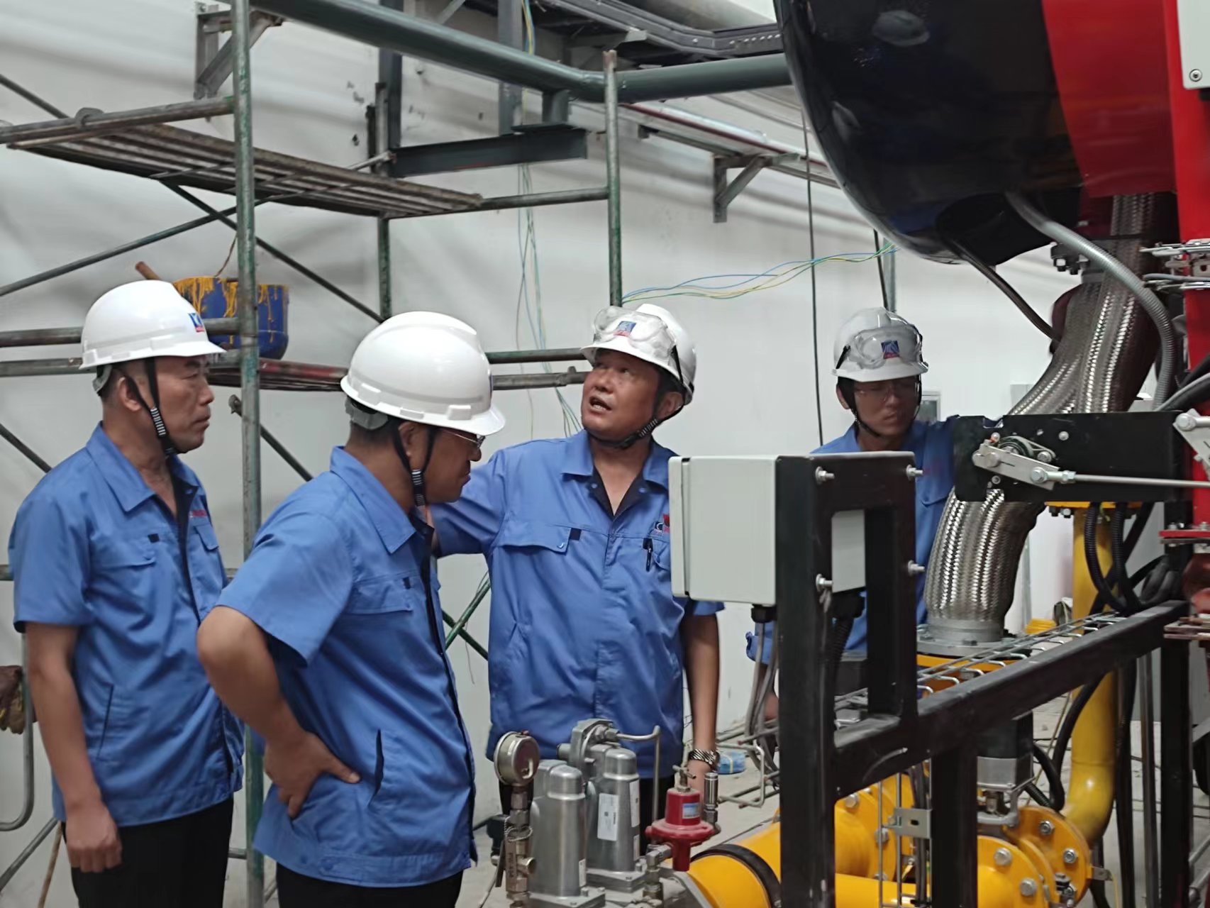 在鍋爐項(xiàng)目建設(shè)現(xiàn)場(chǎng),王讀升詳細(xì)了解項(xiàng)目建設(shè)整體進(jìn)展情況,并對(duì)天 然氣裝置、鍋爐廠房等進(jìn)行實(shí)地查看。王讀升對(duì)項(xiàng)目建設(shè)工作提出要求:工程已進(jìn)入沖刺和收官階段,要進(jìn)一步強(qiáng)化責(zé)任意識(shí),保證工程質(zhì)量和施工安 全,嚴(yán)控時(shí)間節(jié)點(diǎn),確保項(xiàng)目如期完成;對(duì)建設(shè)過(guò)程中可能出現(xiàn)的問(wèn)題要有預(yù)見性和前瞻性,統(tǒng)籌謀劃,提前部署;對(duì)下一步烘爐、煮爐等重要工作, 要優(yōu)化方案,科學(xué)合理安排,抓好關(guān)鍵點(diǎn),特別是鍋爐投運(yùn)后的操作規(guī)程等事項(xiàng),要嚴(yán)格規(guī)范管理,及時(shí)做好教育培訓(xùn)及工藝流程技術(shù)交底工作。